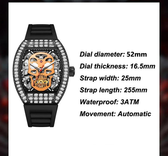 Designed for those who appreciate the finer things in life, the Regal Skeleton Automatic Tourbillon features a skeleton dial that showcases the intricate mechanics within, making it not just a watch, but a statement of elegance. The luminous hands ensure you can tell the time even in the darkest environments, while the water resistance up to 3Bar means it's ready for any adventure.