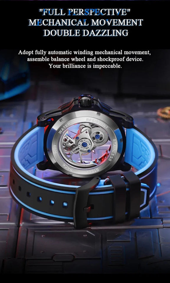 Illuminate Your Style with the Shark & Sapphire Luminary Skeleton Automatic